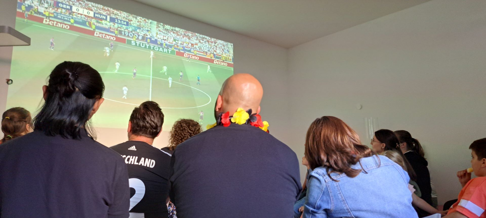 Um 18 Uhr war es dann Zeit für das Fußballspiel Deutschland gegen Ungarn. Das Spiel wurde im neuen Pausenraum verfolgt, und die Begeisterung war groß.